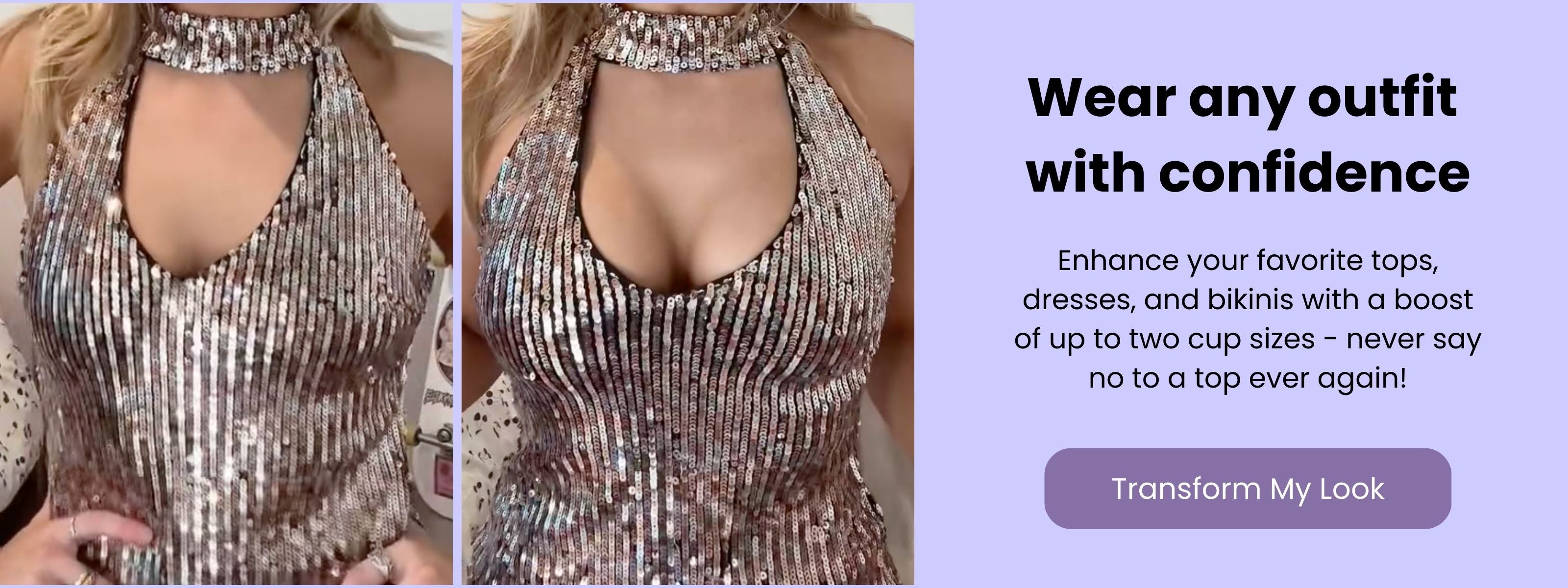 We recommend wearing our inserts in tops, dresses, and bikinis with a more structured bust area that fits tighter to the chest. They won't work well in looser tops that hang off the body since the inserts are held up partially by the support in your clothing.